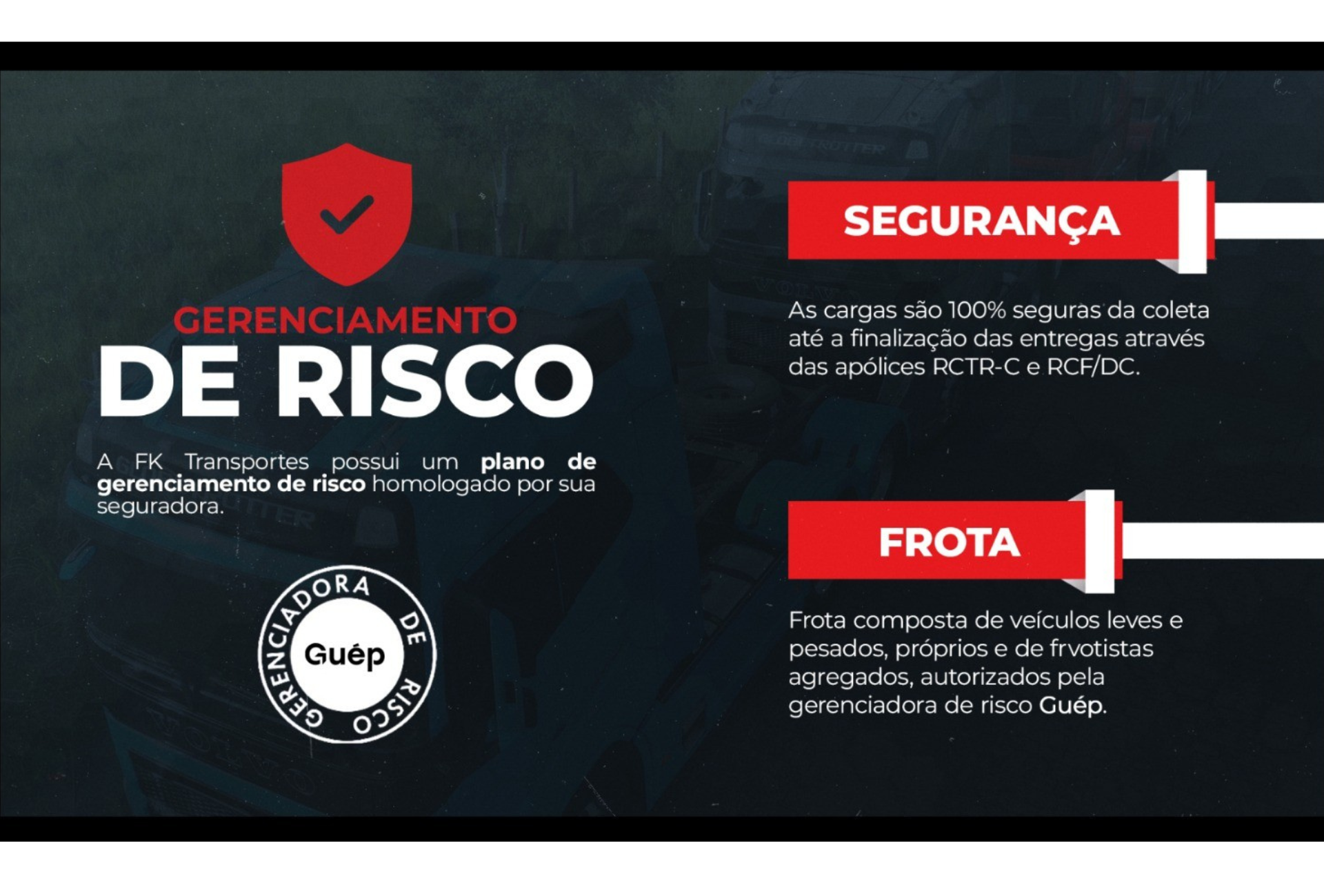 Com anos de experiência no mercado, a FK Transportes destaca com uma parceria confiável para empresas que buscam eficiência e logística. Nosso compromisso é oferecer agilidade, segurança e excelência, garantindo que cada carga chegue ao seu destino com pontualidade e integridade.
